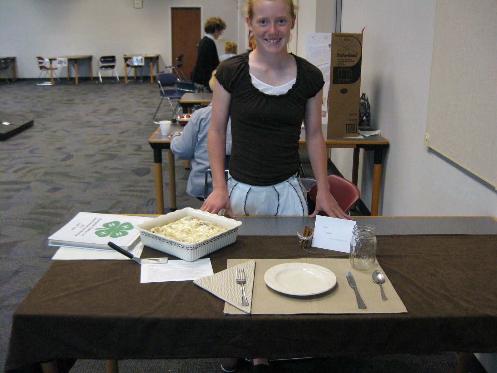 Leah with her place setting, right before judging. Really the judging has a lot to do with how thoroughly you fill out your book, how well you test on the skillathons, your interview, your place setting and it is almost as if how your food tastes is the least of their worries. Trust me, you want it to taste good, but it is more about what you learned in the process. Leah won't even take food to the Ohio State Fair for judging. With that being said, her cinnamon rolls were amazing! After we were all done, the judge came back up to her and asked for another cinnamon roll for the other judges to try. Um yes, this will be our new cinnamon roll recipe.